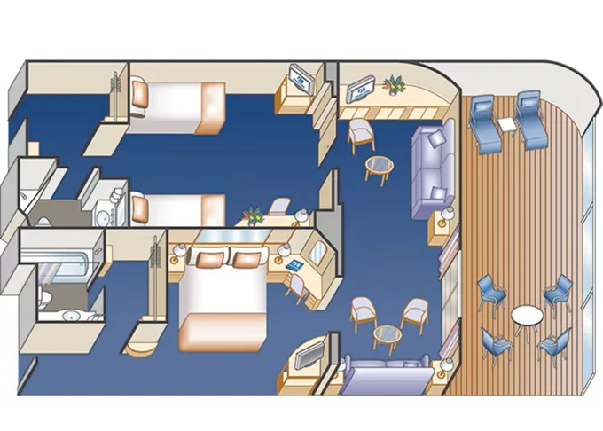 S2 - Owner Suite s balkónom 64 m² (vrátane balkóna). Max 4 osoby (gauč + rozkladacie lôžko). Výhody Suite. 10 570 € 5 285 € za osobu