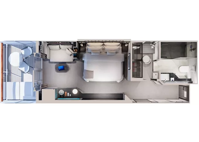 | Ocean Suites - Ocean Grand Terrace Suite Suita 28 m² + kúpeľňa 4 m² + terasa so sedením a pohovkou 11 m². 6/7. paluba. Spálňa s obývacou časťou, šatník. Minibar, kávovar, vodná kanvica, ďalekohľad, sejf, kúpeľňa so sprchou. Fľaša šampanského na privítanie. 6, 7. paluba. Maximálna kapacita 2 dospelé osoby + 1 dieťa do nedovŕšených 18 rokov. | 27 920 € 13 960 € za osobu | ||
