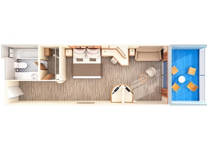 OS - Ocean Suite 26 m² (vrátane balkóna). 8. paluba vzadu; 9. paluba vpredu, vzadu. Výhody Suite. 2 858 € 1 429 € za osobu