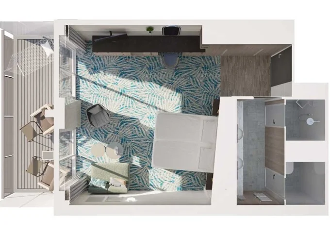 JBBO - Junior Suite s balkónom B 26 m² + balkón 7 m² so stoličkami a podnožkami. 8-12. paluba. Max 4 osoby. Výhody Junior Suite. 4 358 € 4 358 € za osobu