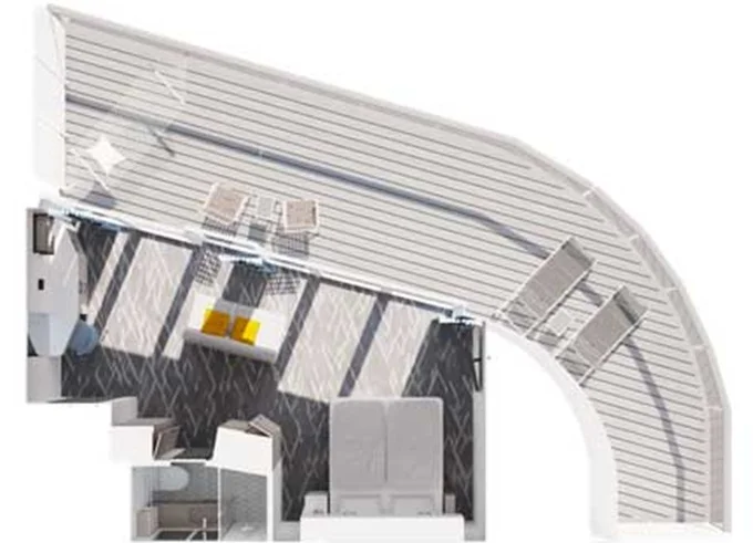 SKBO - Fernweh Suite kat. B 28-38 m² + balkón 34 m² so stolom, ležadlami a hojdacou sieťou. 14. paluba. Max 4 osoby. Výhody Suite. 11 398 € 5 699 € za osobu