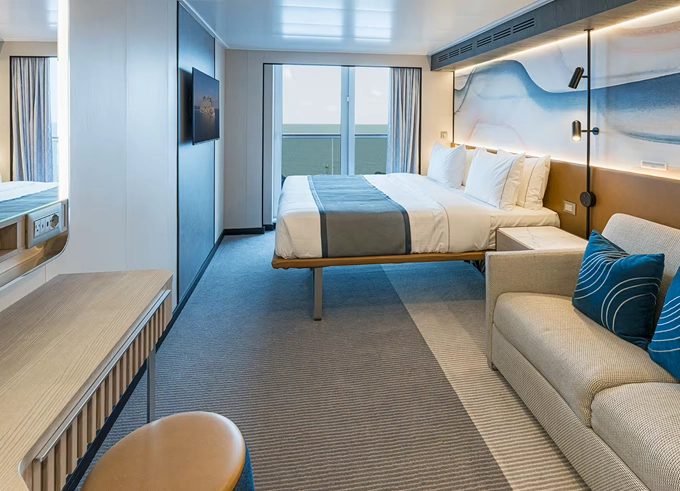 SI - Suite s veľkým balkónom na korme 24 m² / balkón 19 m². 9. paluba - vzadu. Max 2 osoby. Výhody Suite. 8 164 € 4 082 € za osobu