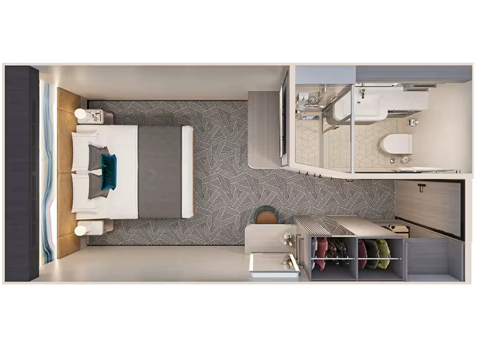 IB - Vnútorná kajuta 15 m². 9-11. paluba. Max 2 osoby. 3 124 € 1 562 € za osobu